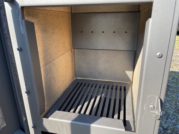 Žárové sklo do 850 stupňů, síla materiálu 3mm, litinový rošt