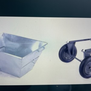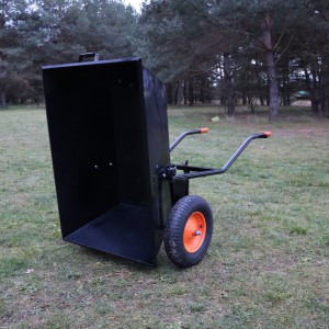 Vozík, kolečko, na krmení (hnůj, seno, slámu) sklopný, objem 200 litrů, nosnost 300 kg, vozík je na třech čepech, jeden je jistící a dva jsou sklopné, korba lze sundat, celková délka: 160cm, celková šířka: 85cm, celková výška 75cm, hloubka korby: 40cm, celková váha: 31 kg, síla materiálu 1,5 mm, žárově zinkovaný, možno též malovaný. Doprava možná, lze zaslat.